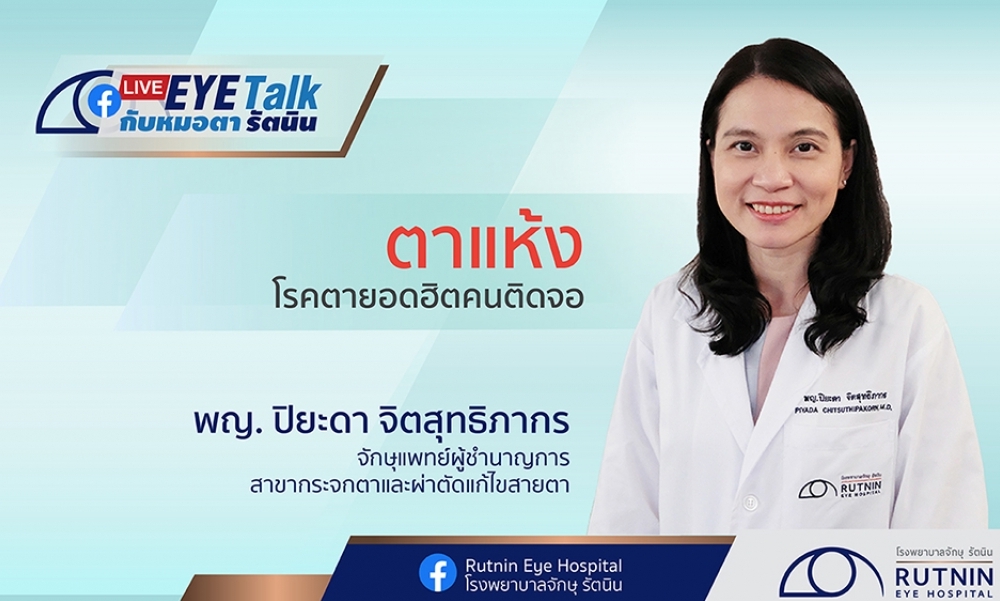 Facebook Live Eye Talk กับหมอตารัตนิน เมื่อวันที่ 9 มีนาคม 2565 กับประเด็นสุขภาพตาใกล้ตัวคุณ เรื่อง ตาแห้ง โรคตายอดฮิตคนติดจอ โดย พญ. ปิยะดา จิตสุทธิภากร จักษุแพทย์ผู้ชำนาญการสาขากระจกตาและผ่าตัดแก้ไขสายตา สามารถติดตามฟังย้อนหลังได้ที่ Facebook หรือ Youtube ของโรงพยาบาล
