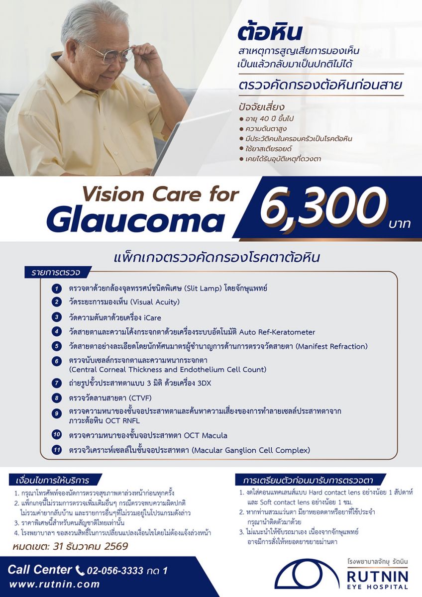 2. แพ็กเกจนี้ไม่รวมค่าใช้จ่าย กรณีที่จักษุแพทย์ตรวจพบสิ่งผิดปกติและต้องตรวจเพิ่มเติม นอกเหนือจากรายการในแพ็กเกจนี้