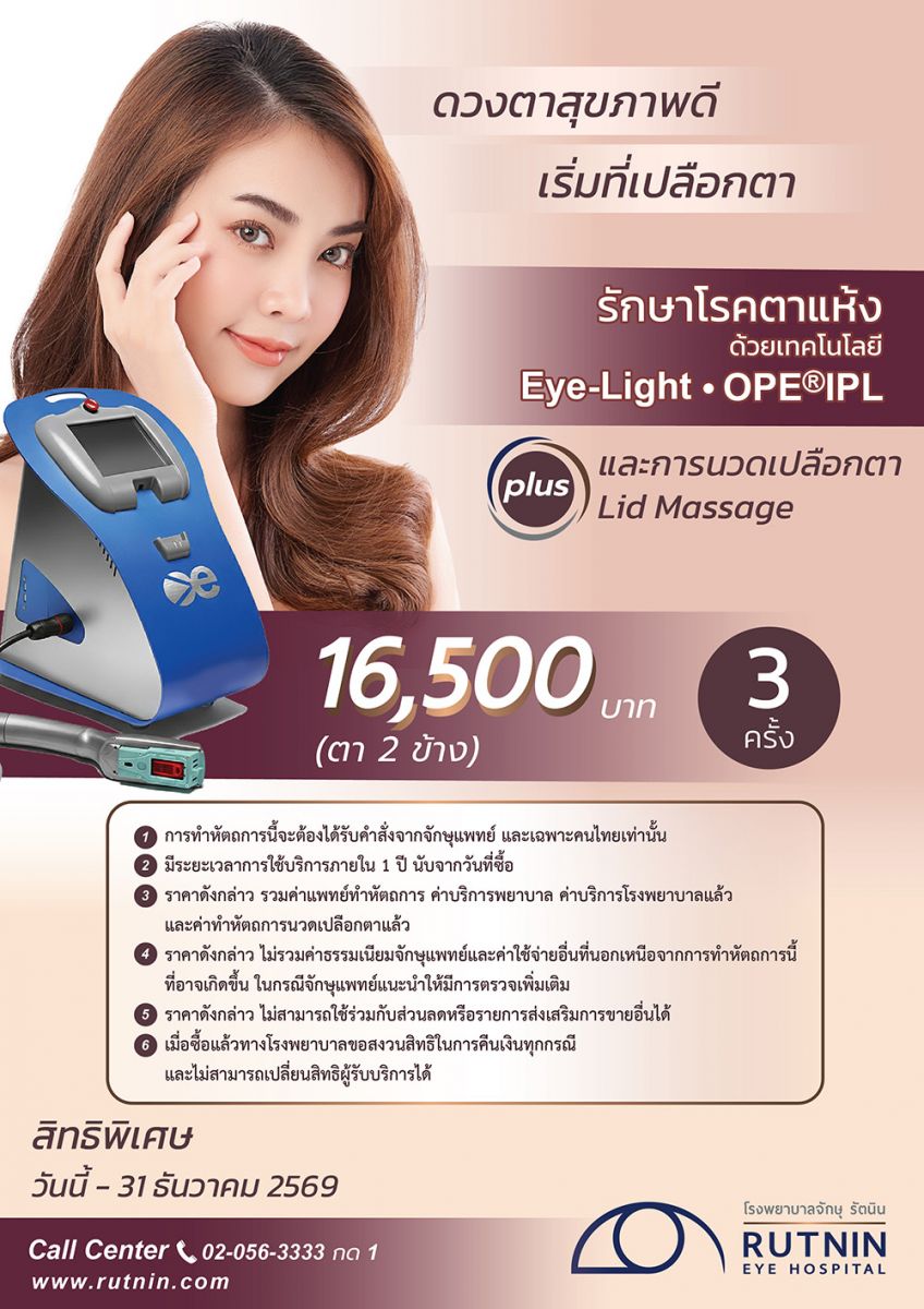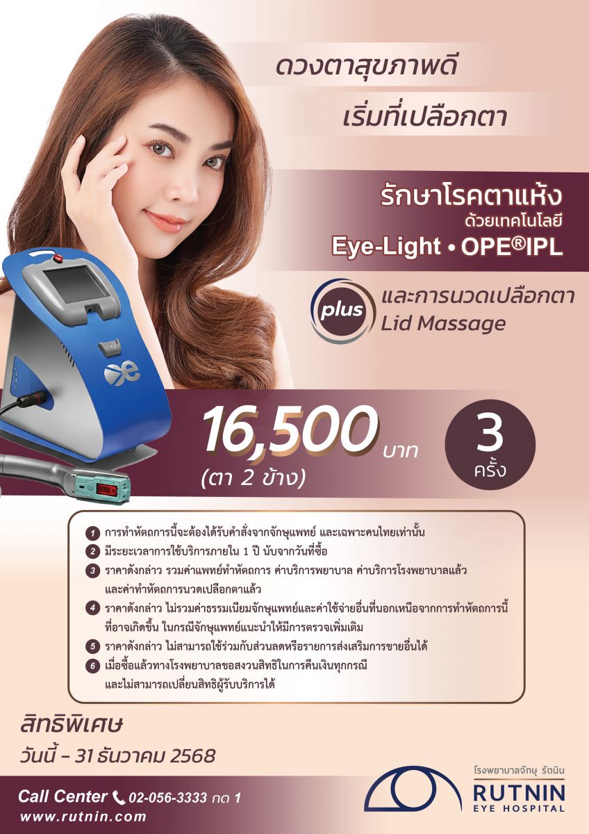 รักษาโรคตาแห้งด้วยเครื่องกระตุ้นการทำงานของต่อมไขมันที่เปลือกตา The Eye-Light OPE®IPL และ การนวดเปลือกตา